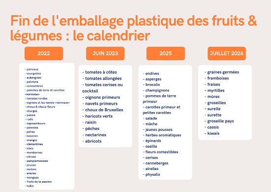 - Certains fruits et légumes ne peuvent plus être emballés dans du plastique ;
